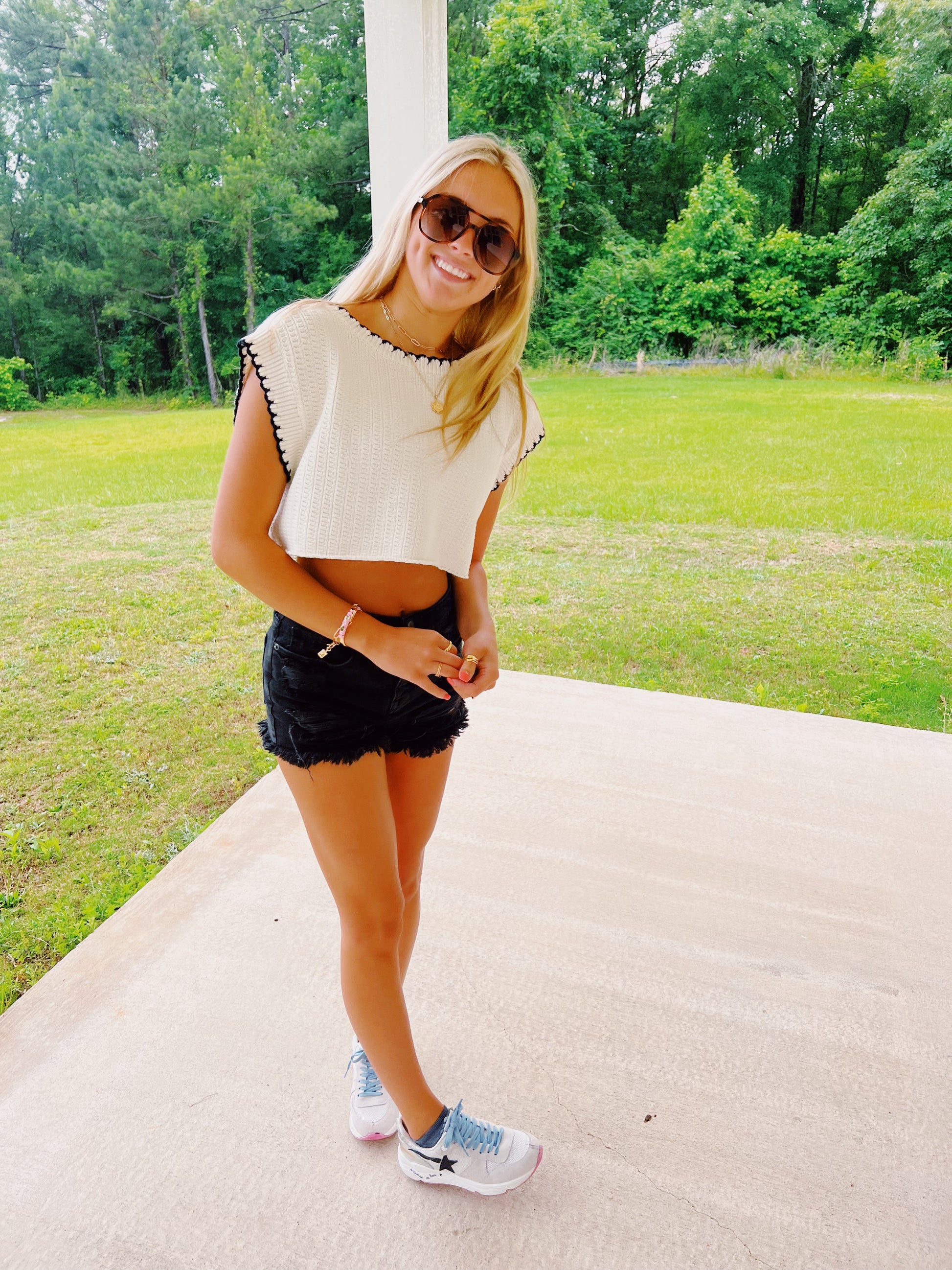 Perfect top for summer!! Loose fit & slightly cropped!!