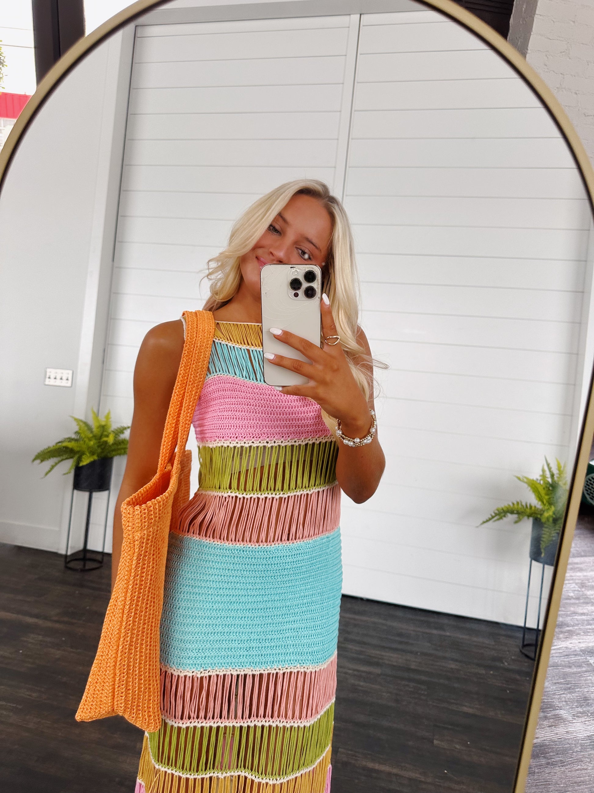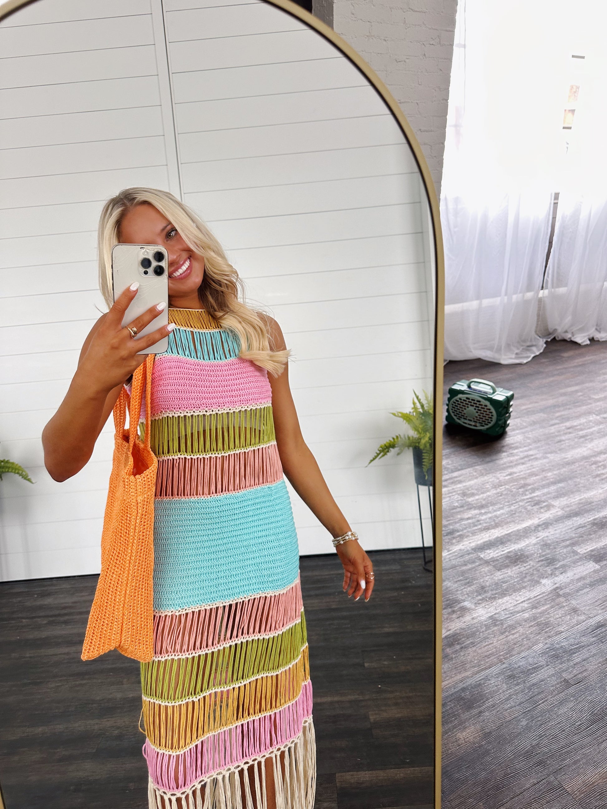Your perfect go-to summer bag for all things!! Lined material on the inside with a zipper!