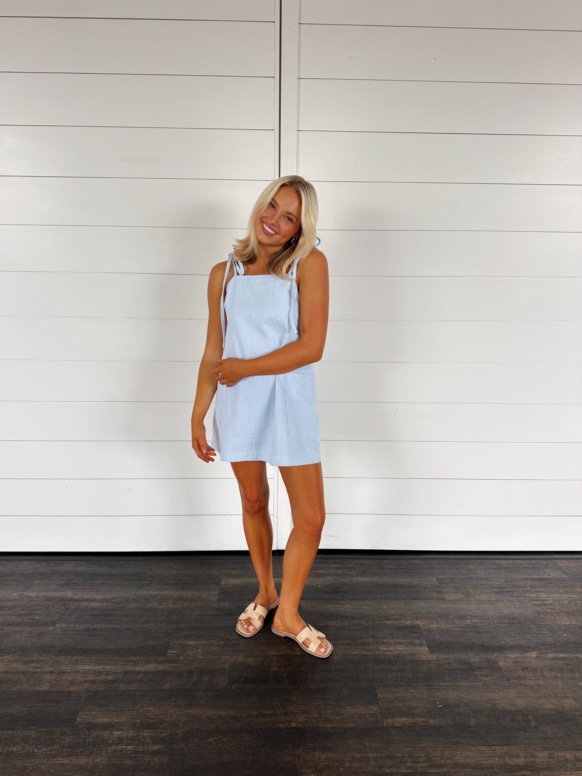 The perfect go-to summer dress! Perfect to dress up or down! Ties on the shoulders and has side pockets! Fits TTS. Model wearing a small!