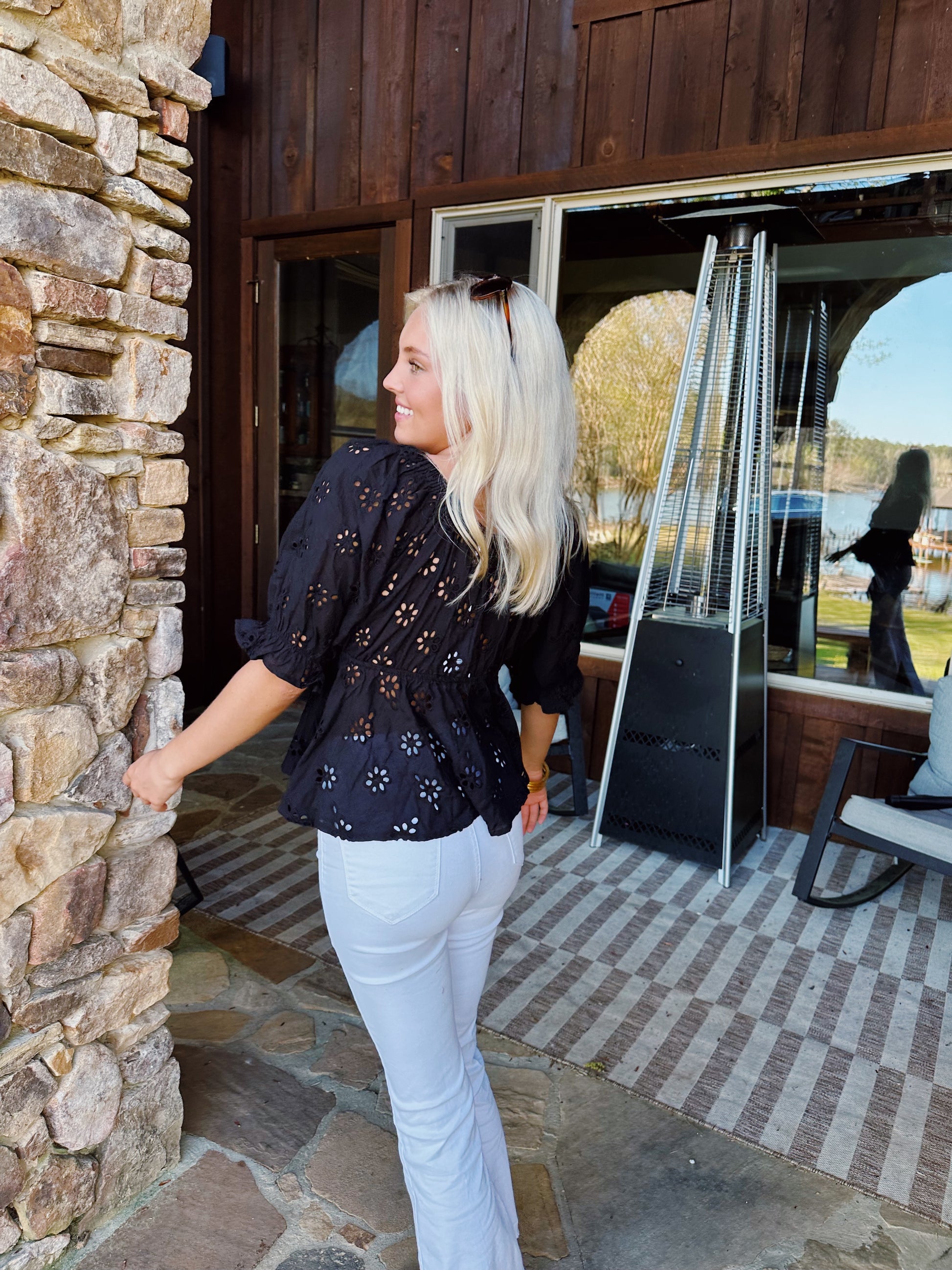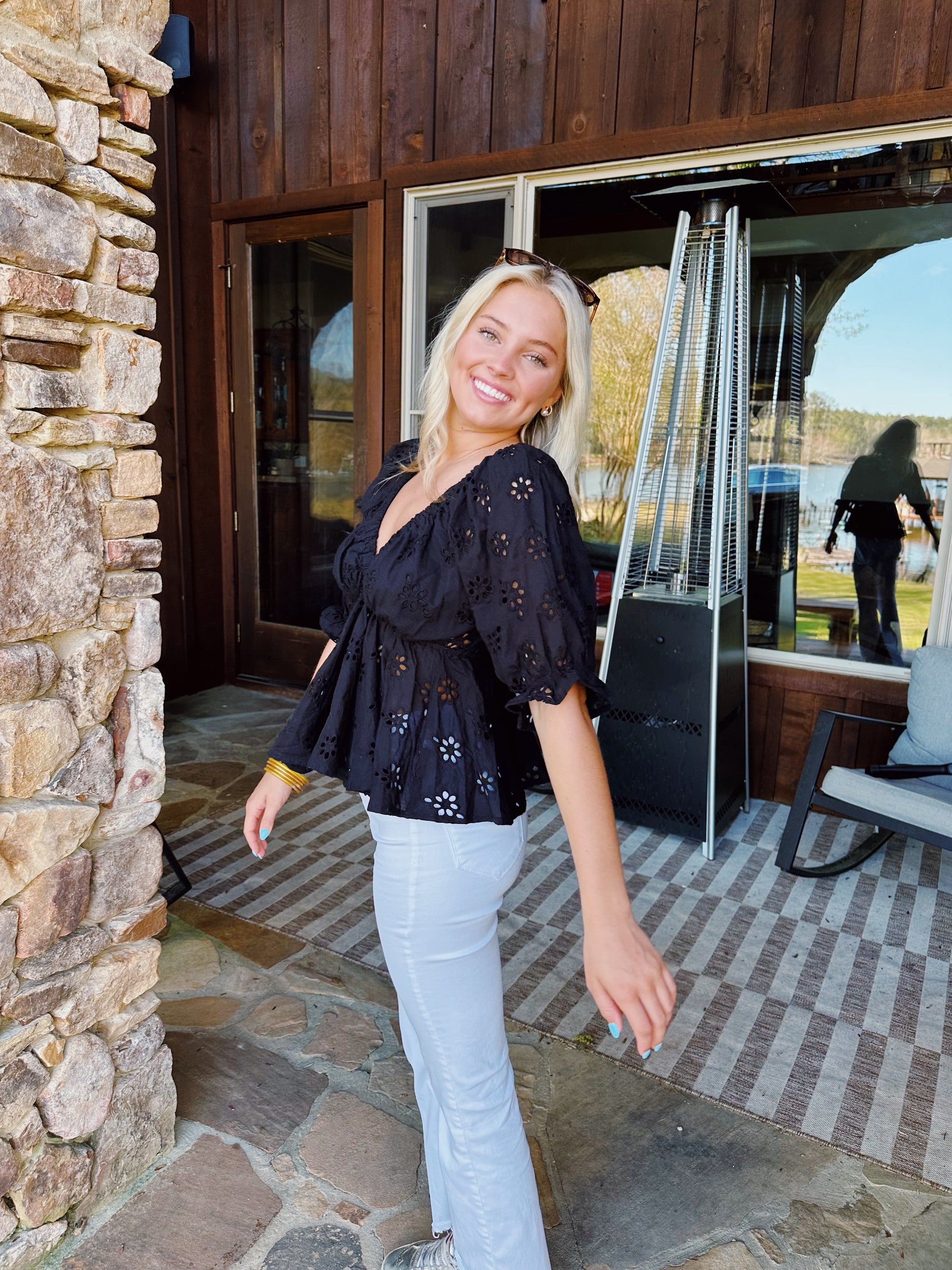 Flower embroidered top with ruffles!! A cinched waist and chest lining. Fits TTS model wearing a small!!!