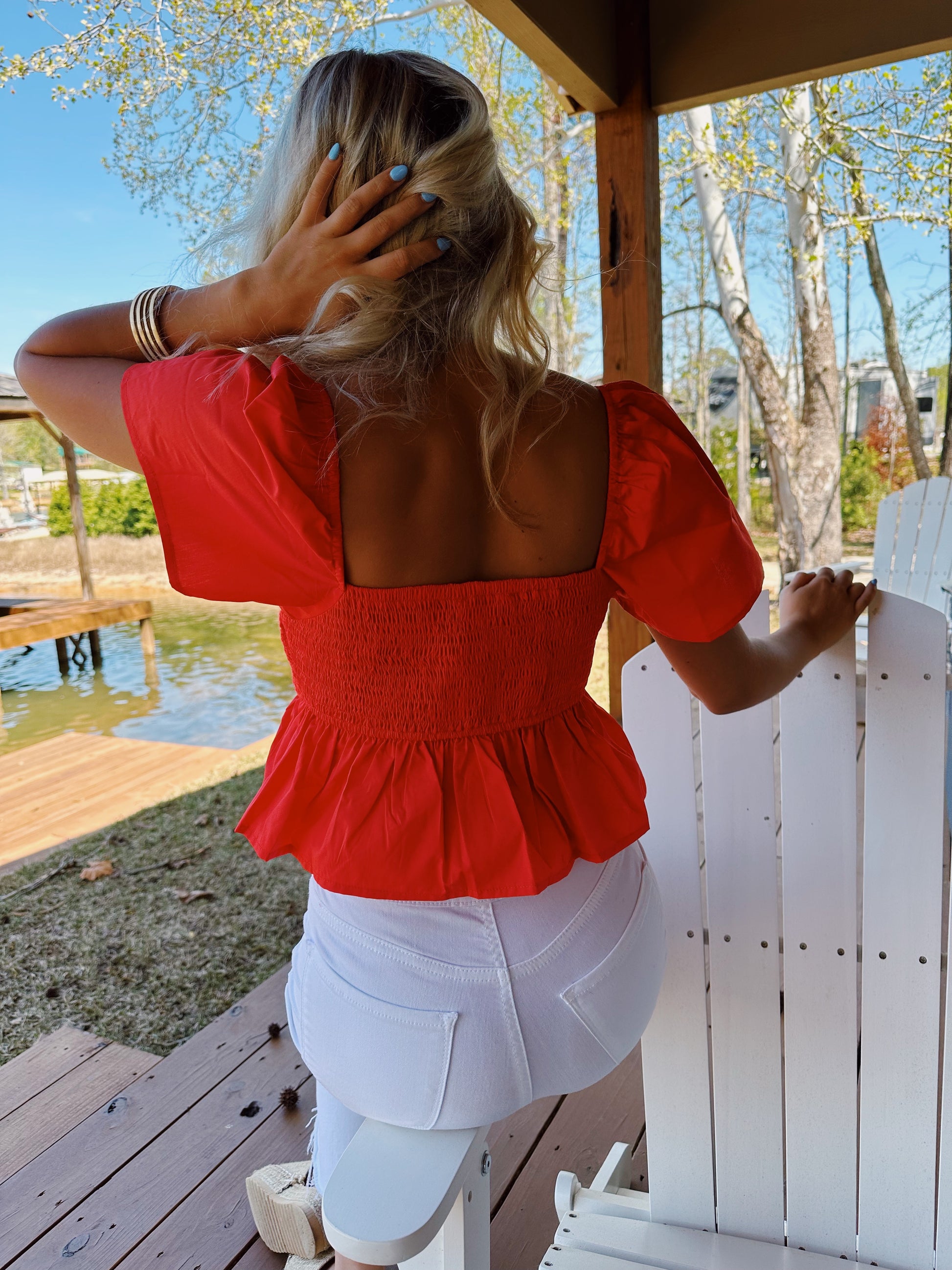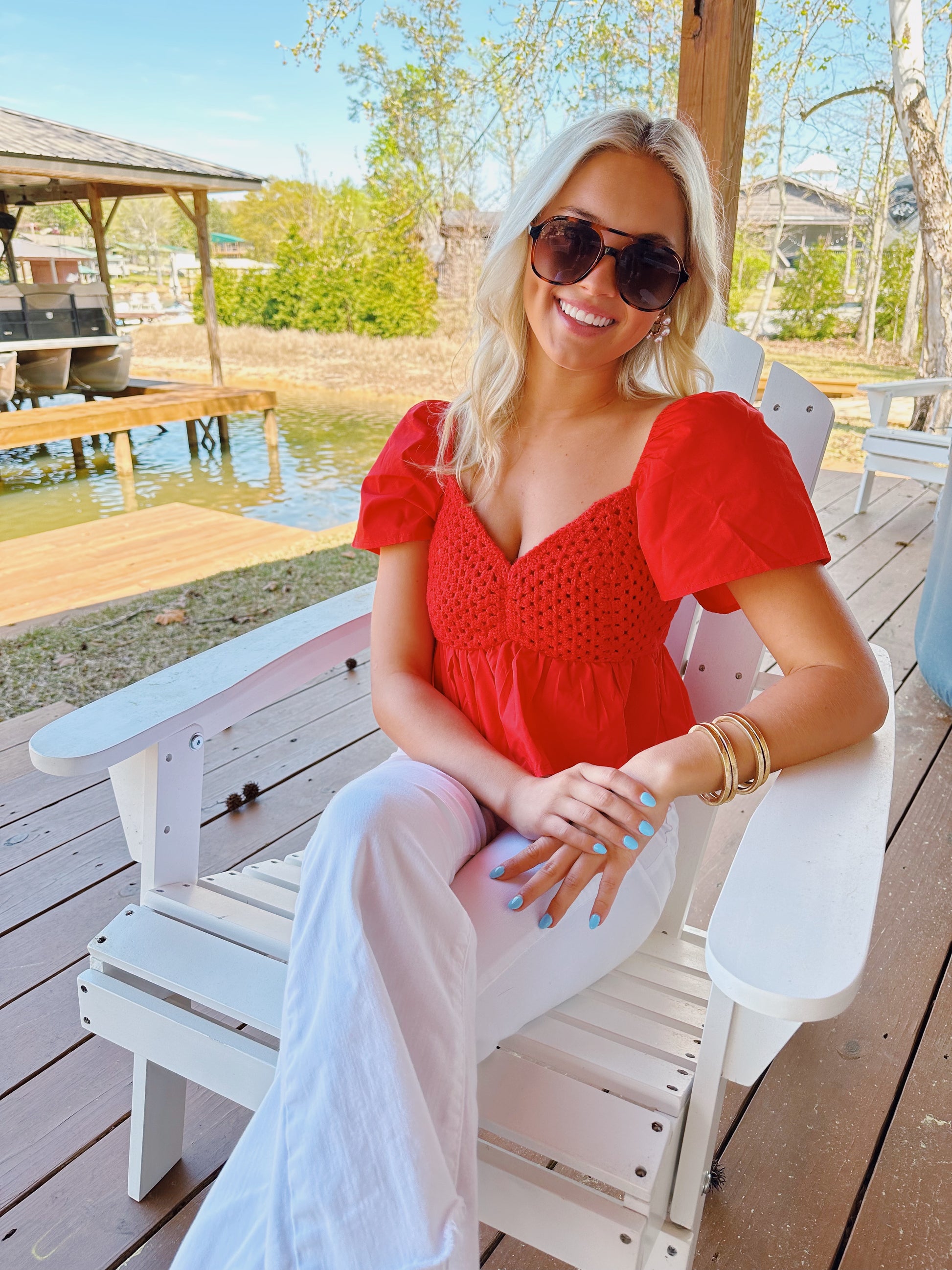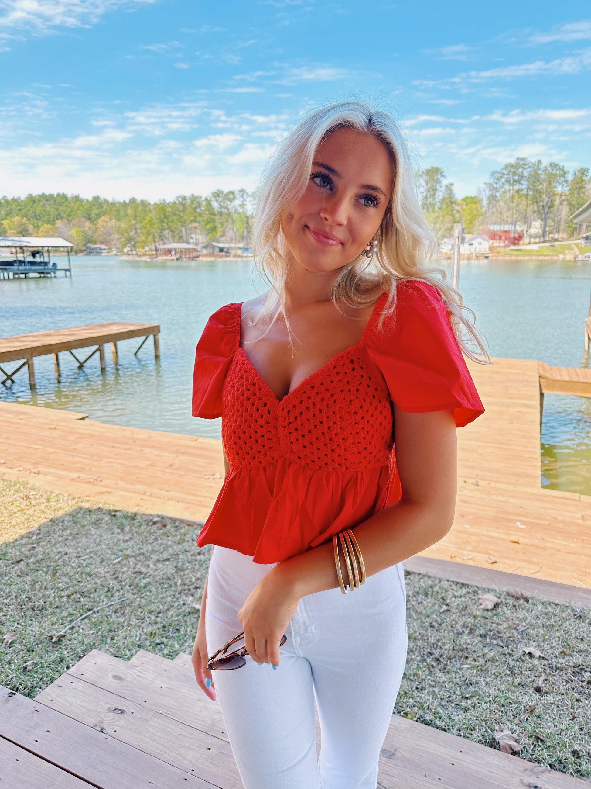 Crochet detailed babydoll top!! Fits TTS model wearing a small!!