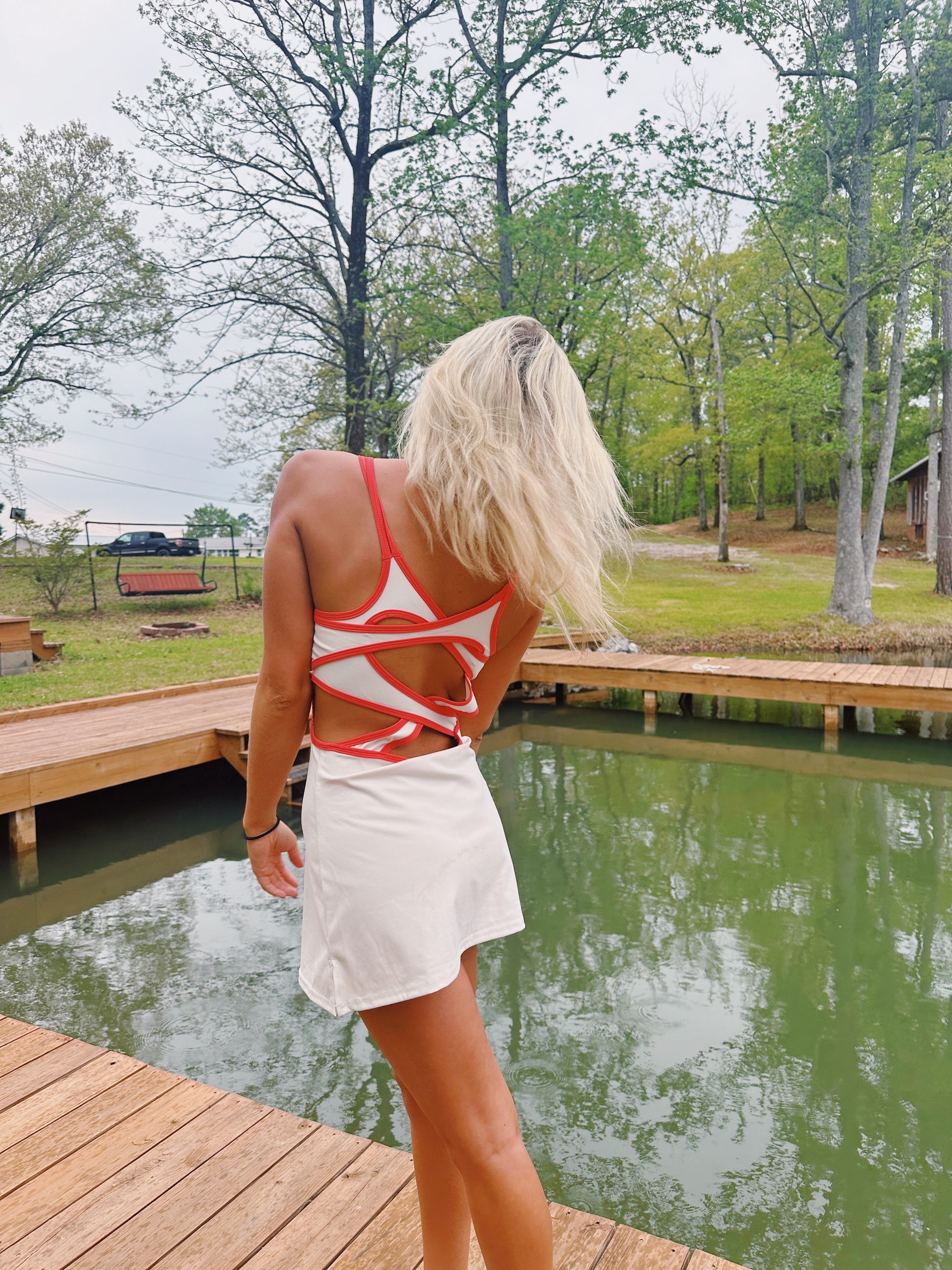 The perfect athletic dress for the summer. It has a built in bra and shorts! Buttery soft and comfortable. Perfect back details too! (Im wearing a small but, I would need a size down!)